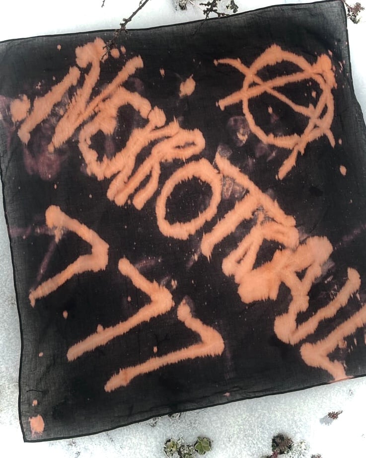 The INFINITY BANDANA is a handmade cotton bandana marked with the infinity symbol stitched into one corner. Each piece has its own unique chlorinated design. Use it around your head, your neck, your waist, or whetever works for you!